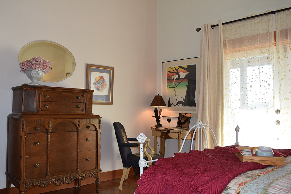 This delightful, 178 square foot bedroom retreat with its own private entrance, shares a semi-private bath and is fully furnished in country-style "Shabby Chic." Rental highlights include common area privileges, many amenities, and all utilities except personal phone landline and/or cell phone service, nor in-room Roku TV premium subscriptions (which can be purchased at additional monthly costs). The Farmhouse is not a party house. It is a year-round, owner-occupied private home offering rooms to discerning renters who want a very comfortable, safe, secure, relaxing, quiet, and hassle-free place to live.